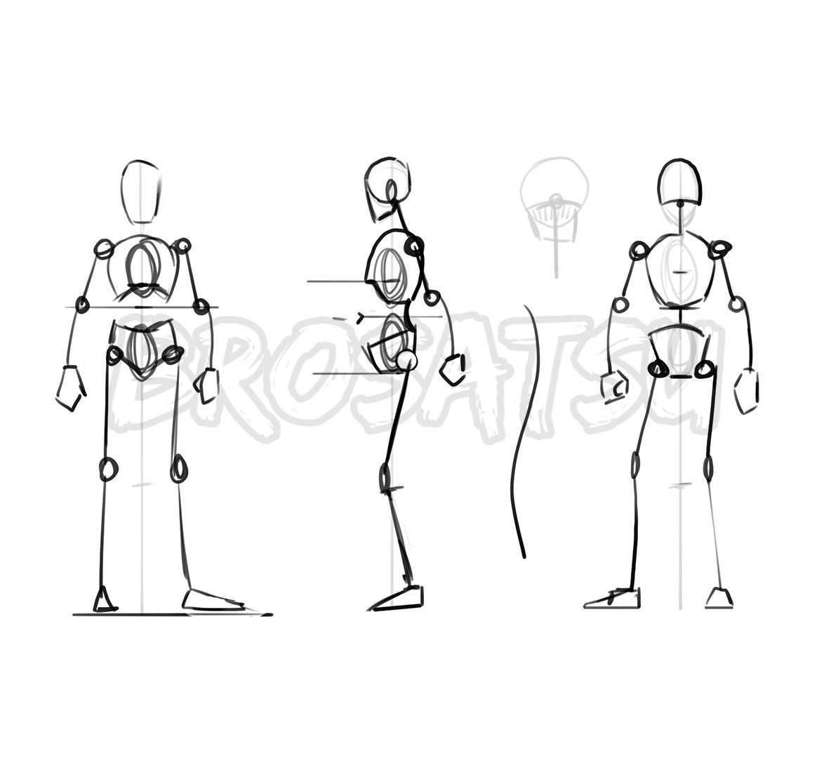 Even though arms and legs can go in every direction, the core of the body doesn’t change much. Once the joints are in place, the rest of the figure is easier to map out.